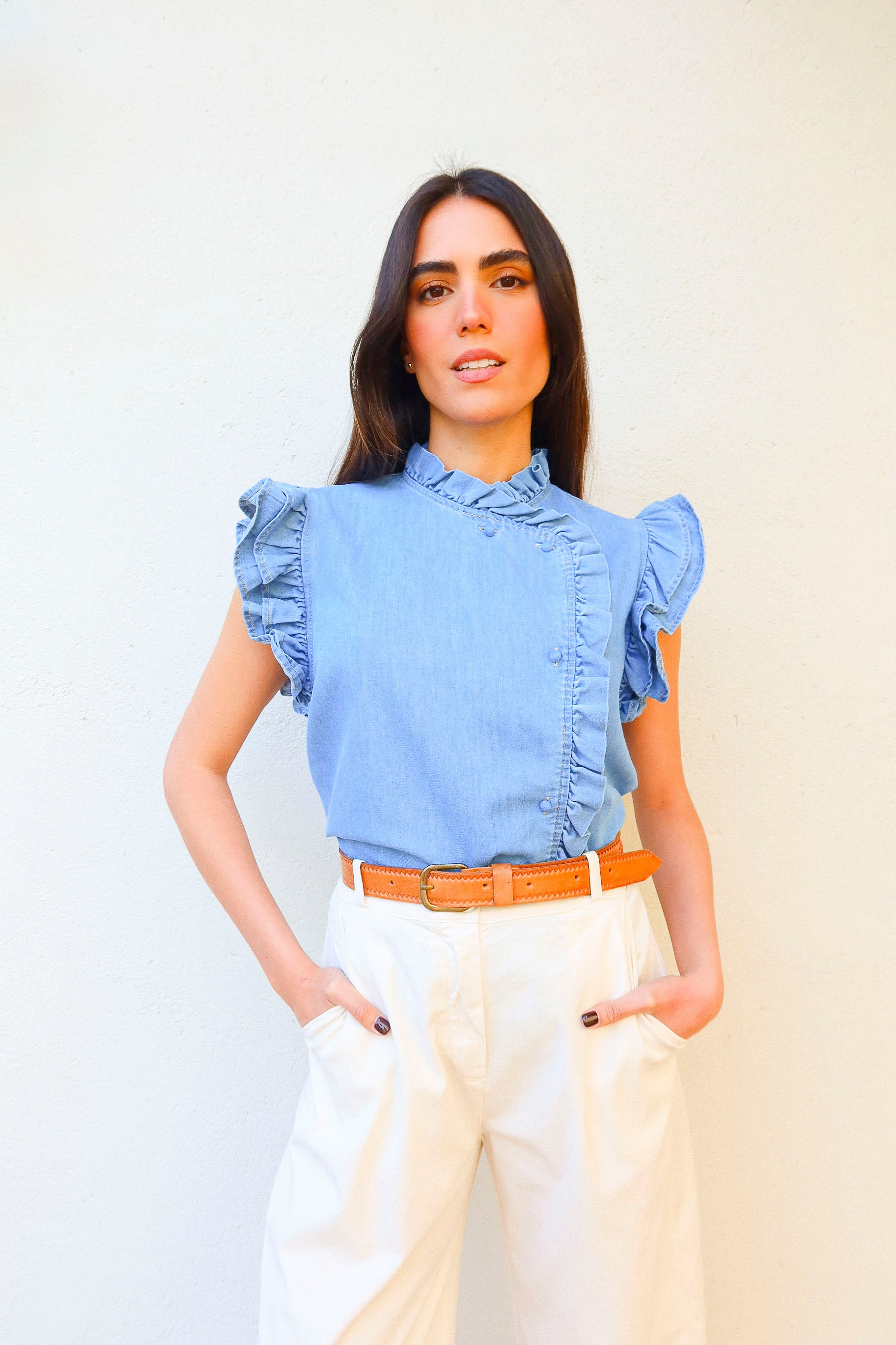 Top Laub Fruncido Azul