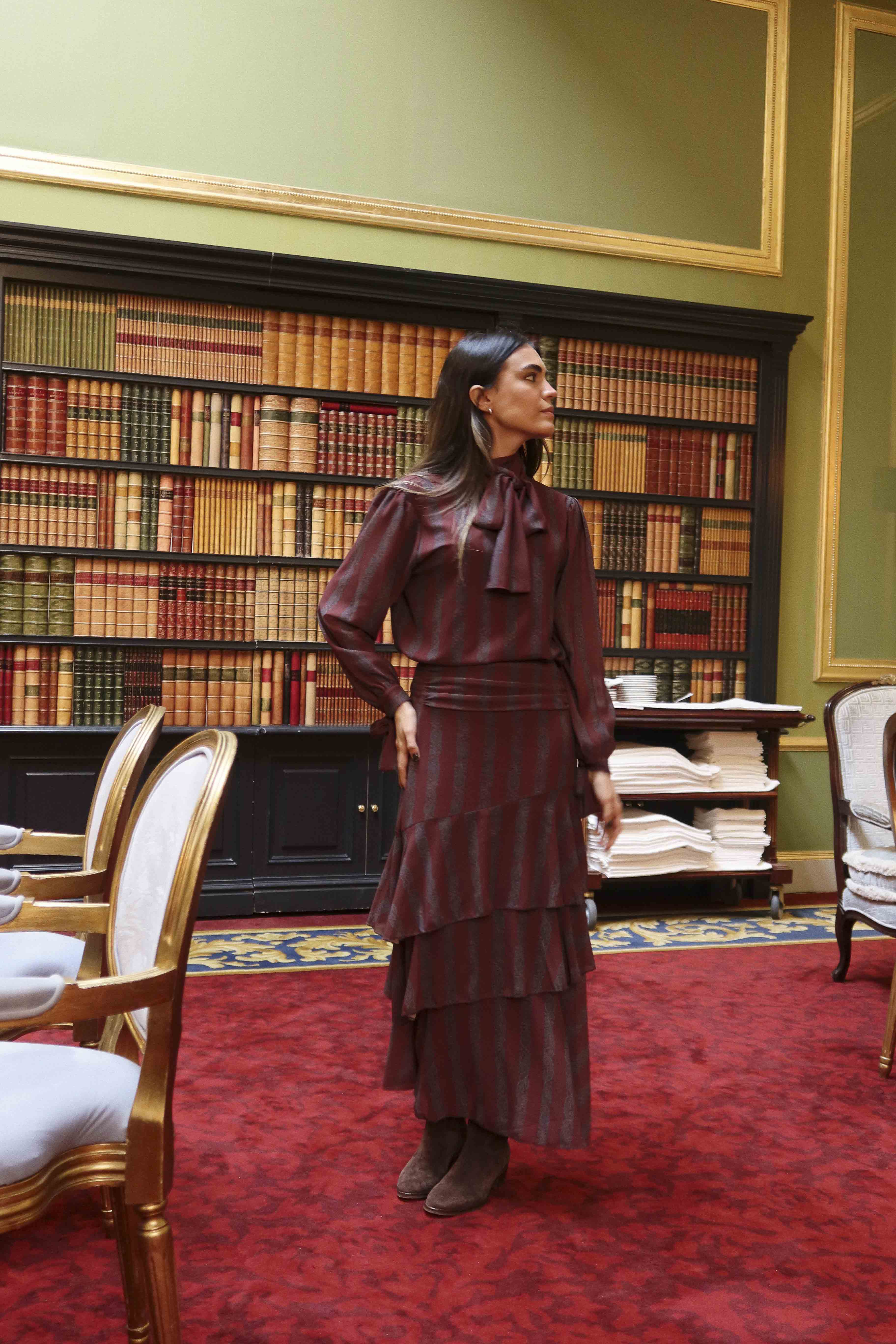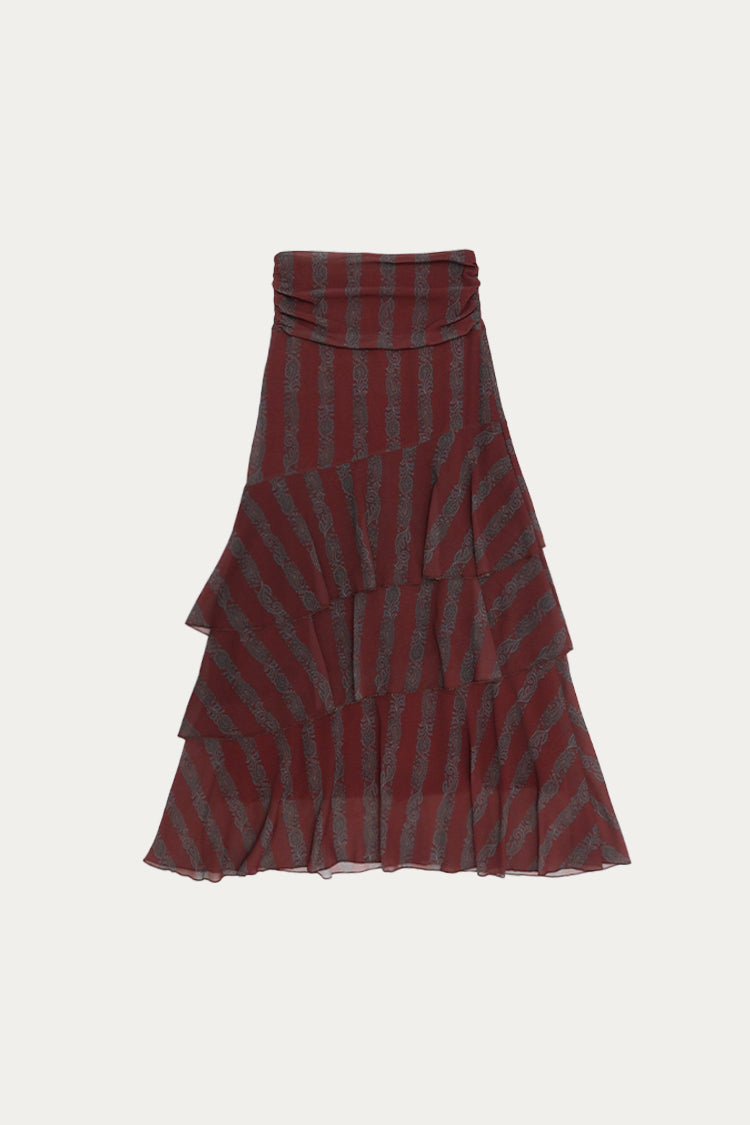 Falda Strep Paisley Burdeos