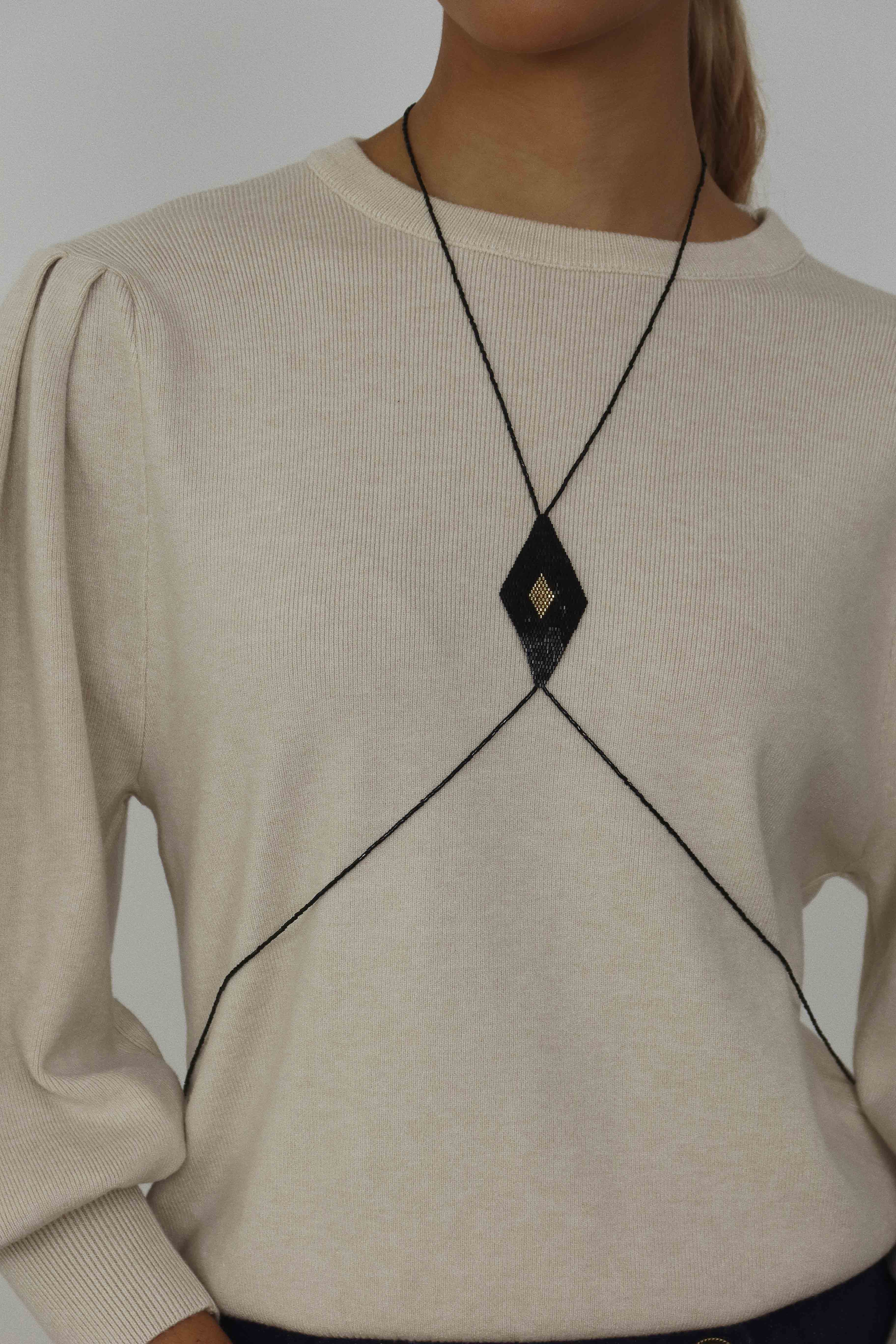 Collar tipo body con cierre en el cuello y otro en la cintura.