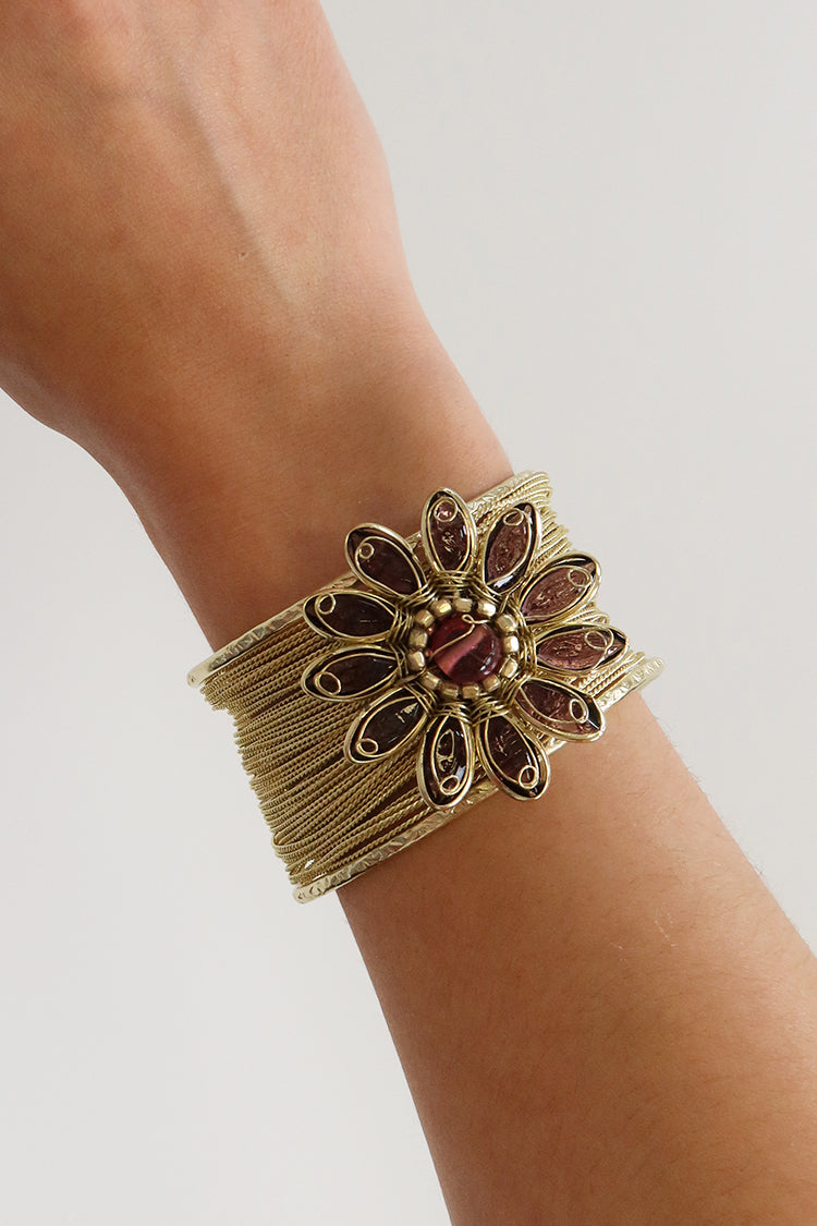 Brazalete decorado con flor de cristales.