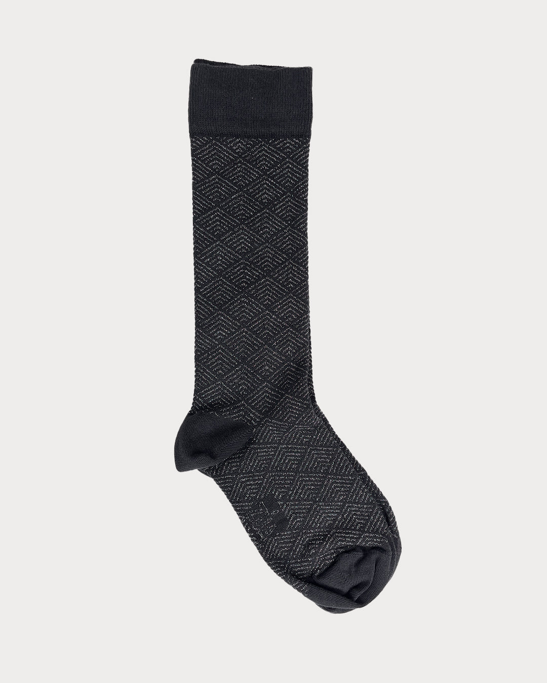 Calcetines de vestir marengo con patrón de rombos entrelazados, ideales para un estilo elegante y moderno.