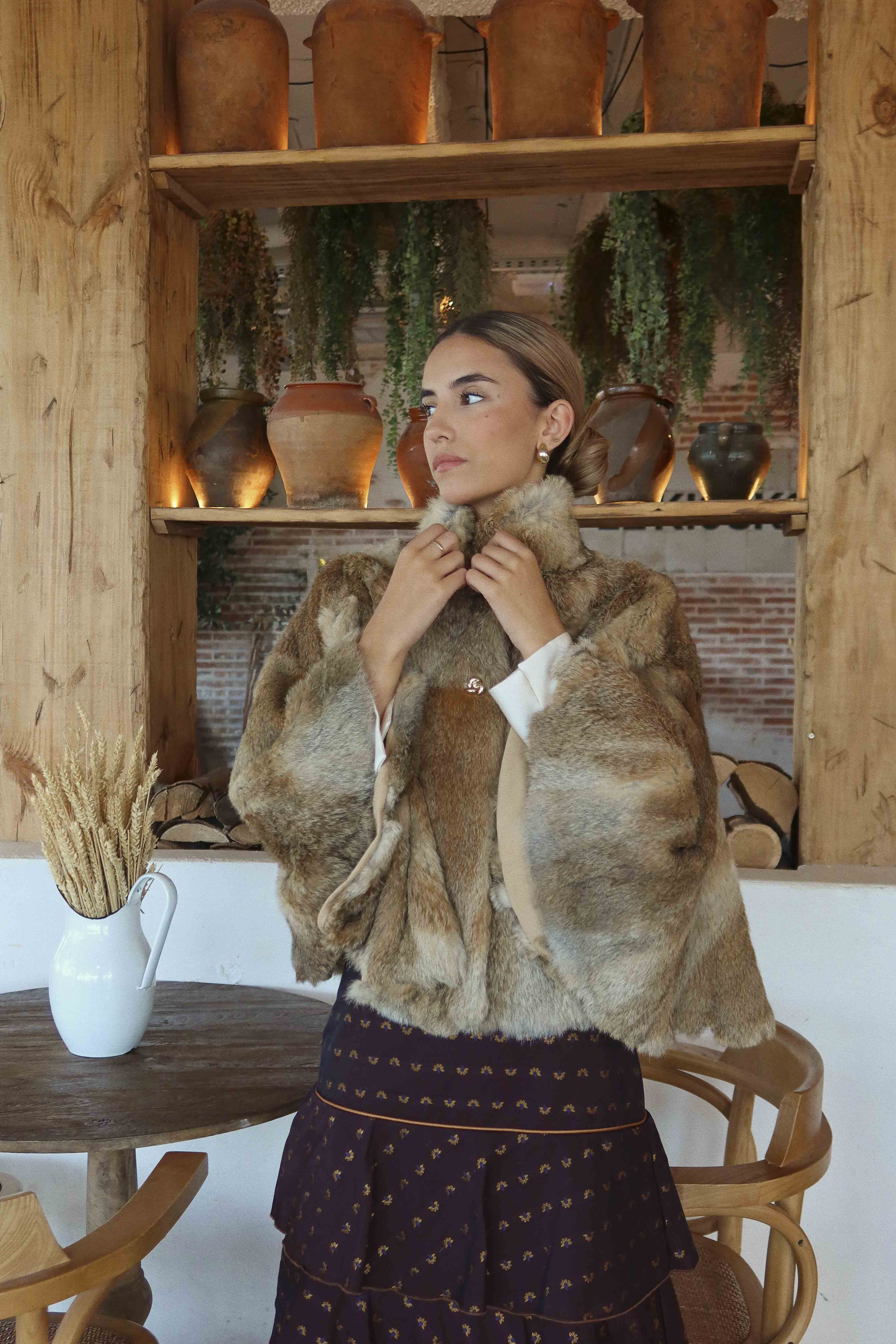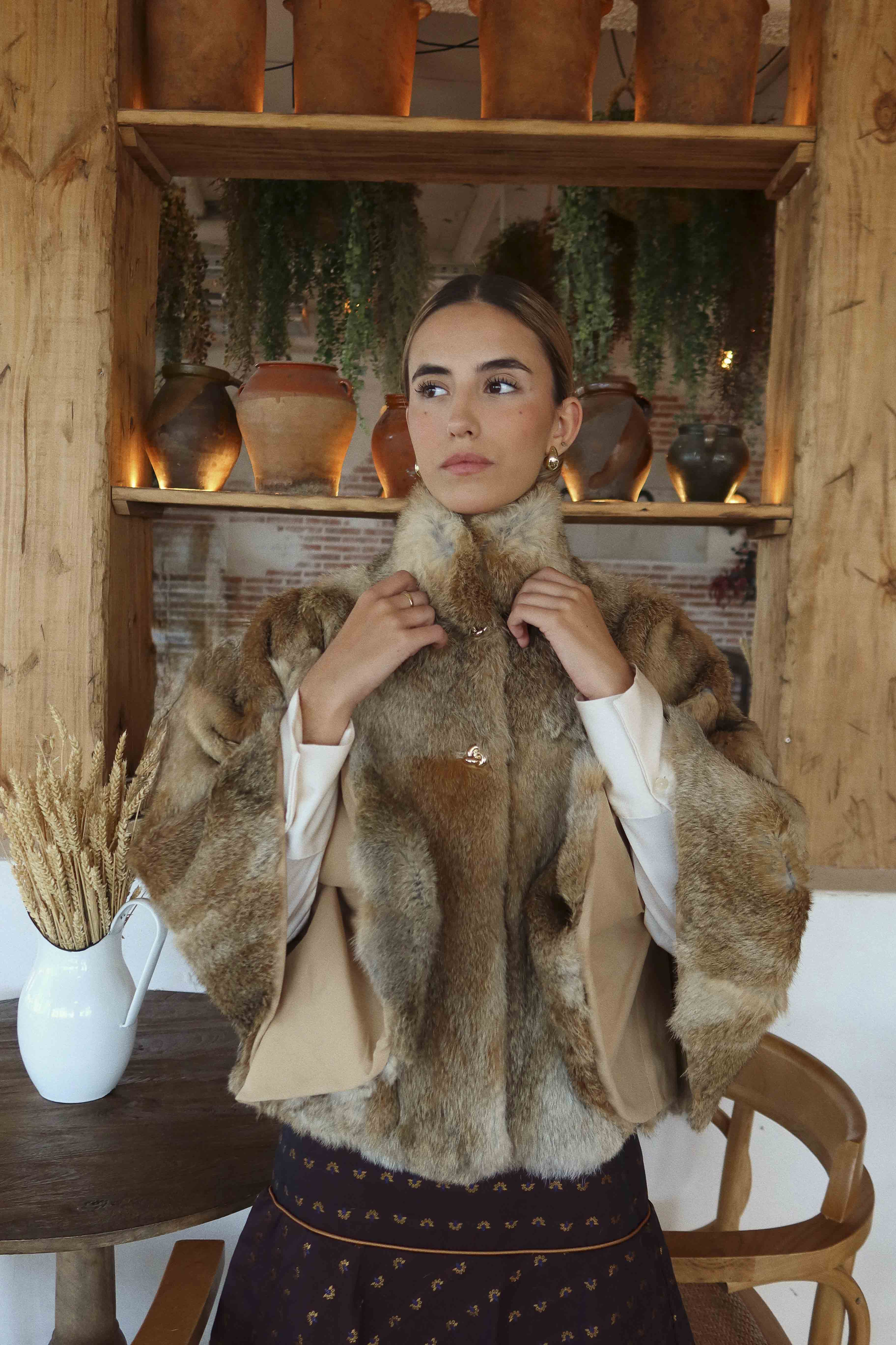 Capa de pelo natural, al tratarse de un material 100 % natural, cada pieza es única: el tono y la textura del pelo pueden variar ligeramente entre un artículo y otro, lo que aporta un carácter exclusivo a cada capa.