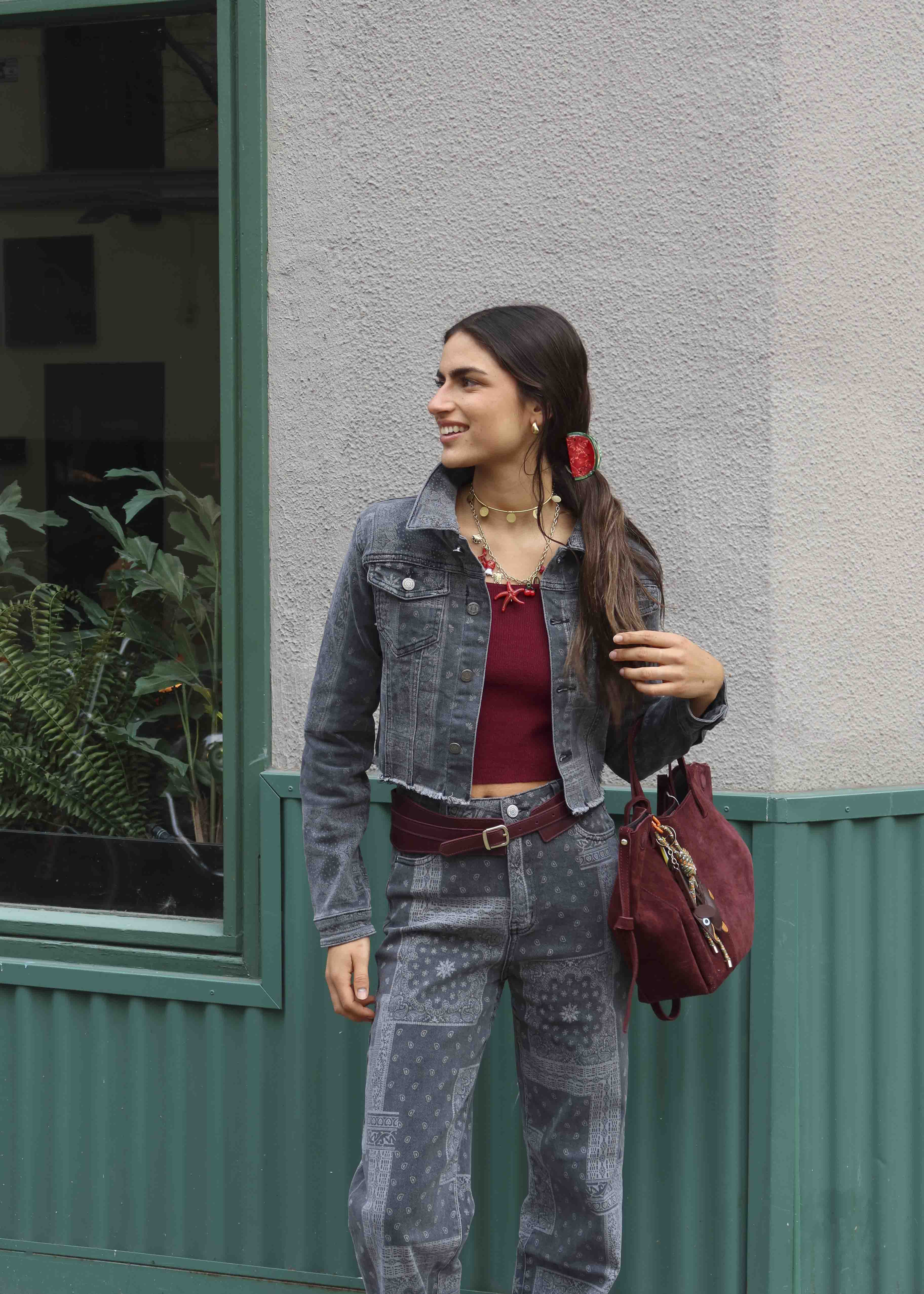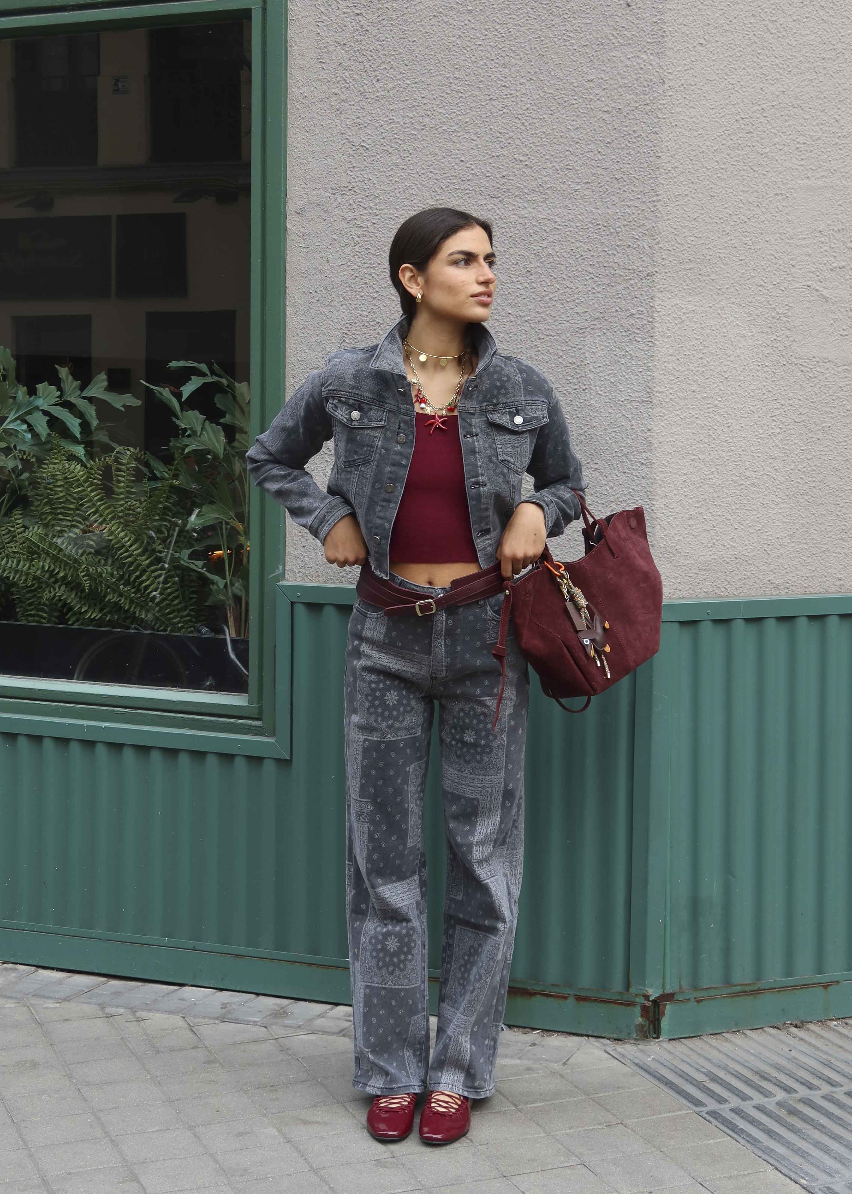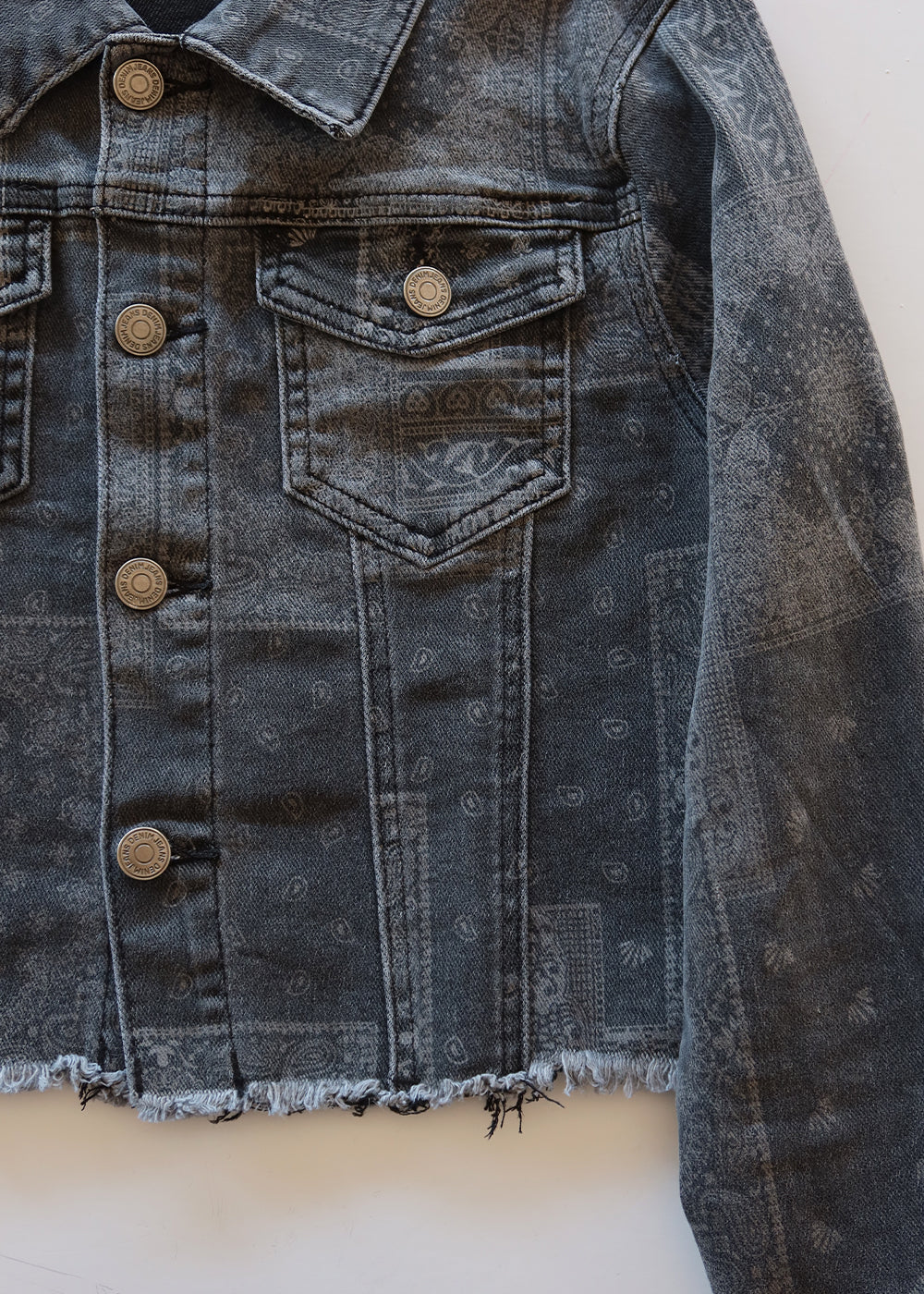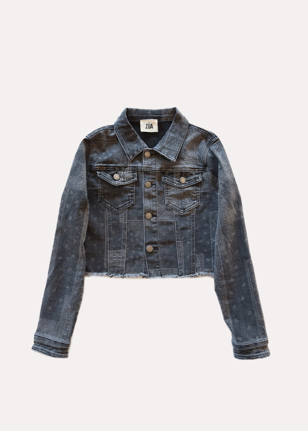 Cazadora vaquera con estampado, cierre delantero con botones y bolsillos.