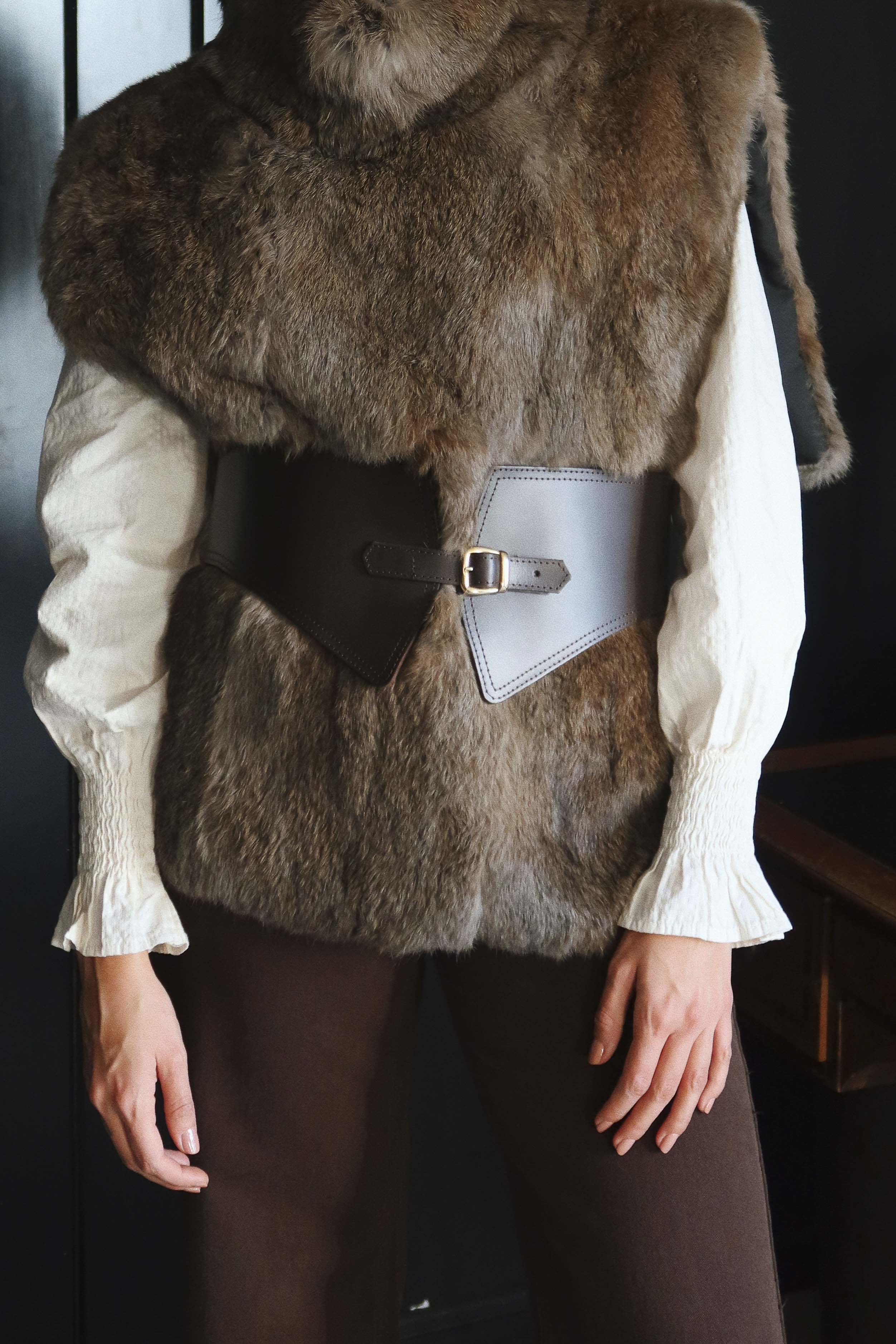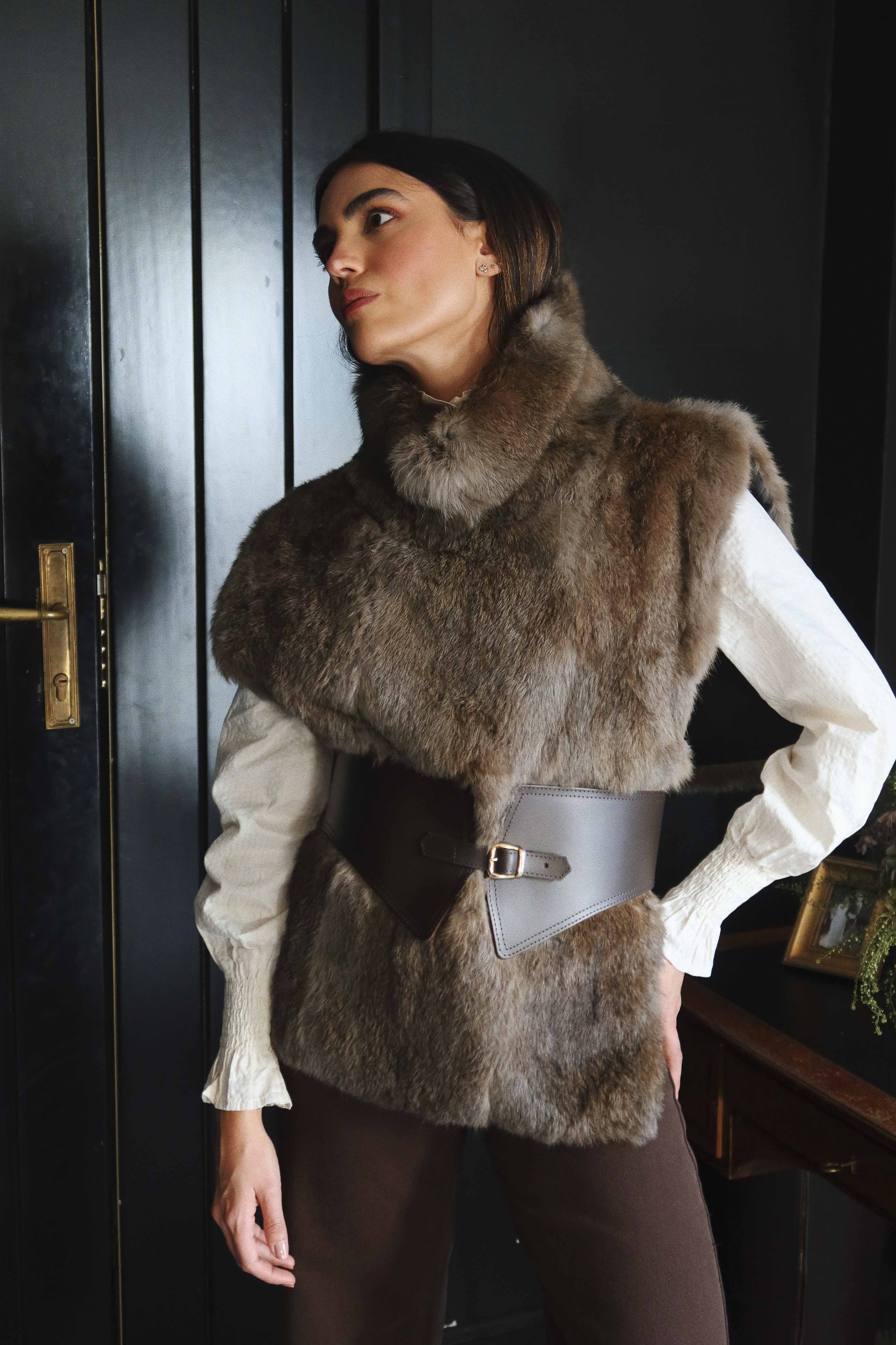 Peto con cuello alto. Al tratarse de un material 100 % natural, cada pieza es única: el tono y la textura del pelo pueden variar ligeramente entre un artículo y otro, lo que aporta un carácter exclusivo a cada peto.