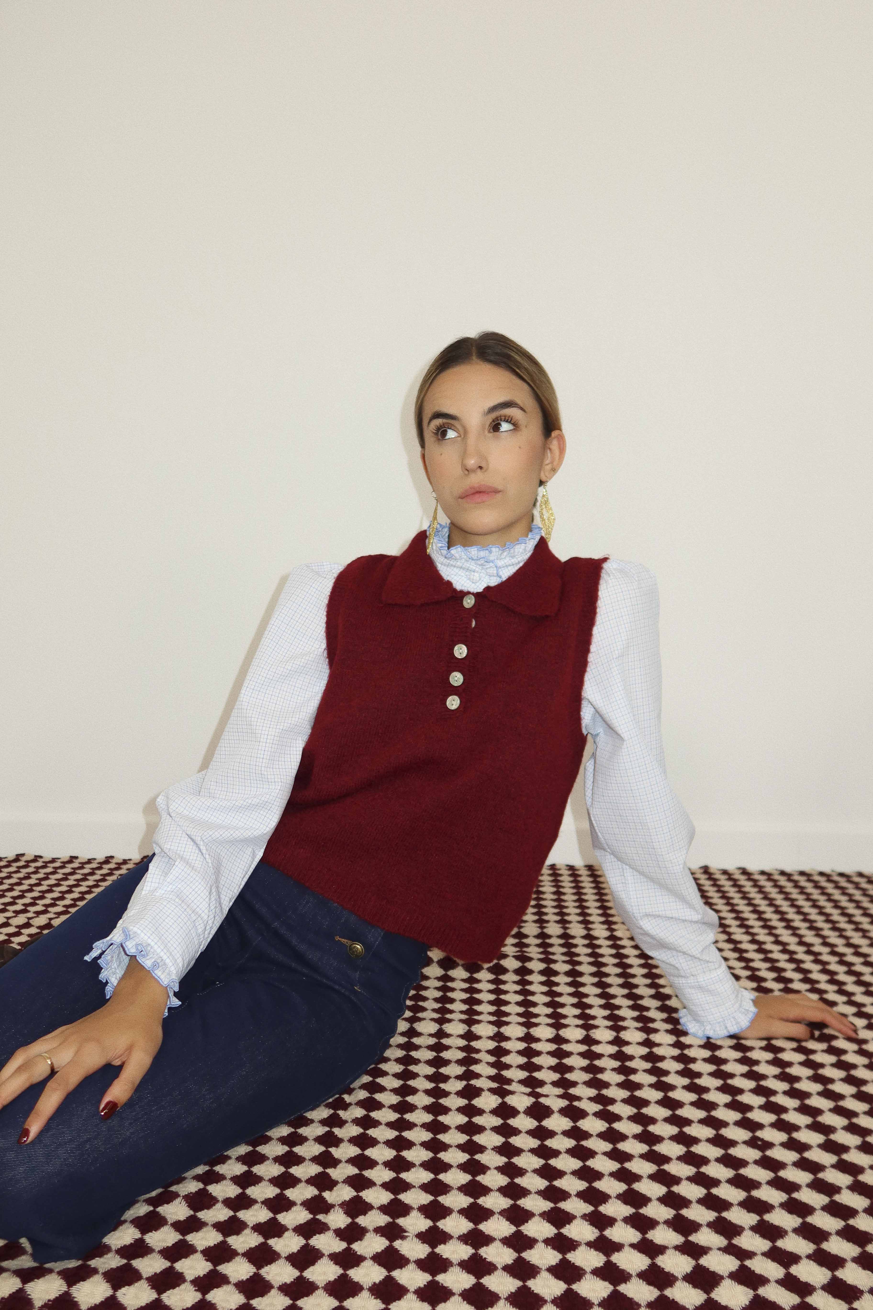 La talla única de este chaleco mide: 34 cm ancho de hombros, 47 cm ancho de pecho y 48 cm de largo.