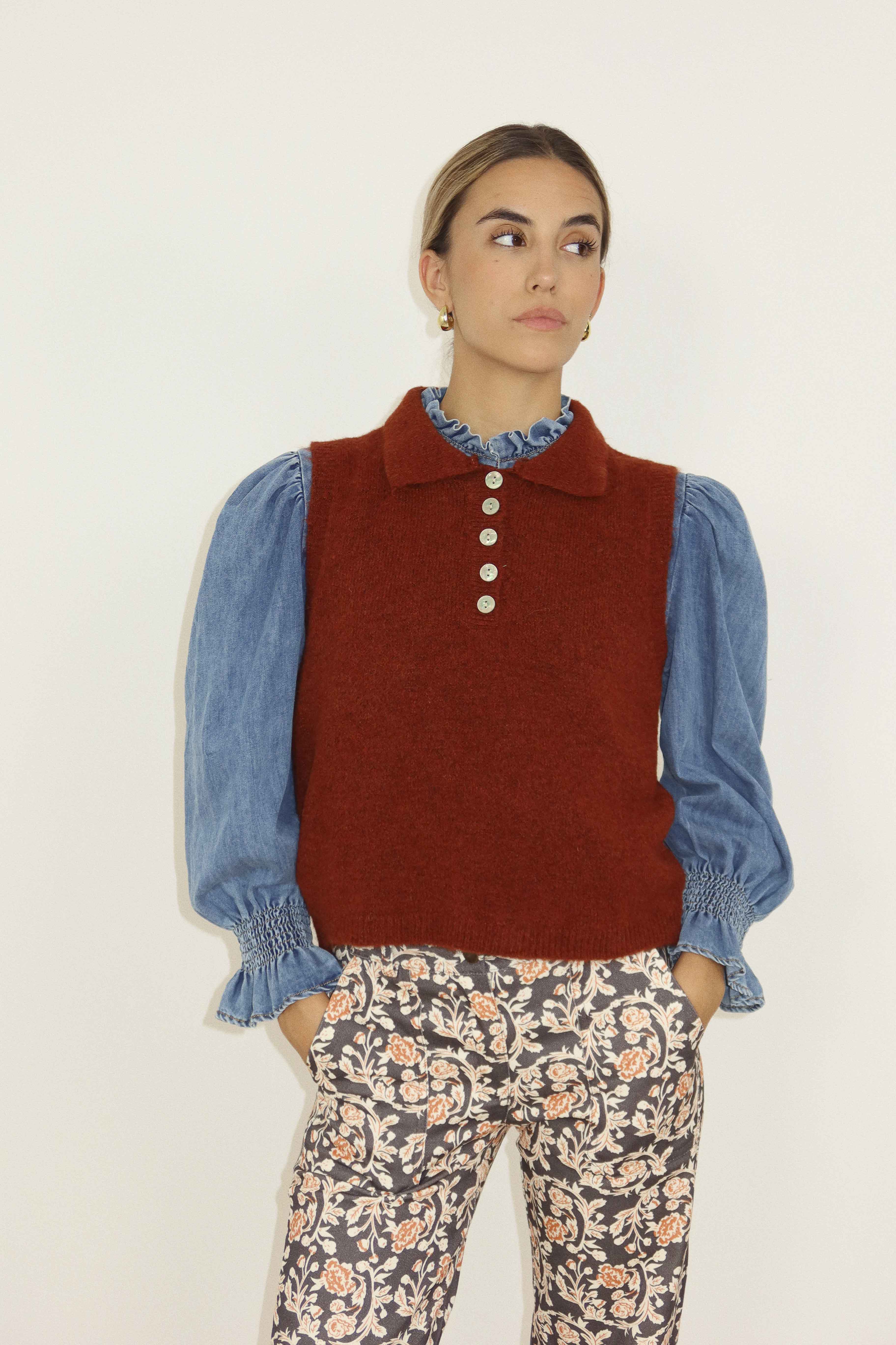 La talla única de este chaleco mide: 34 cm ancho de hombros, 47 cm ancho de pecho y 48 cm de largo.