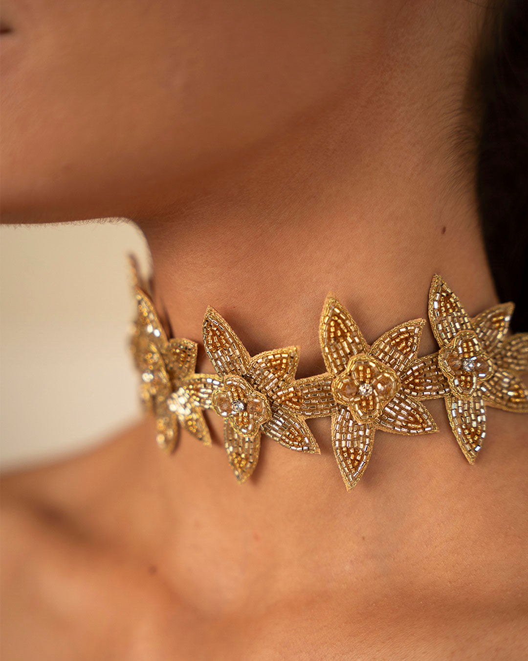 Choker elaborado con cuentas brillantes. Forrado en la parte interior y cierre con mosquetón.