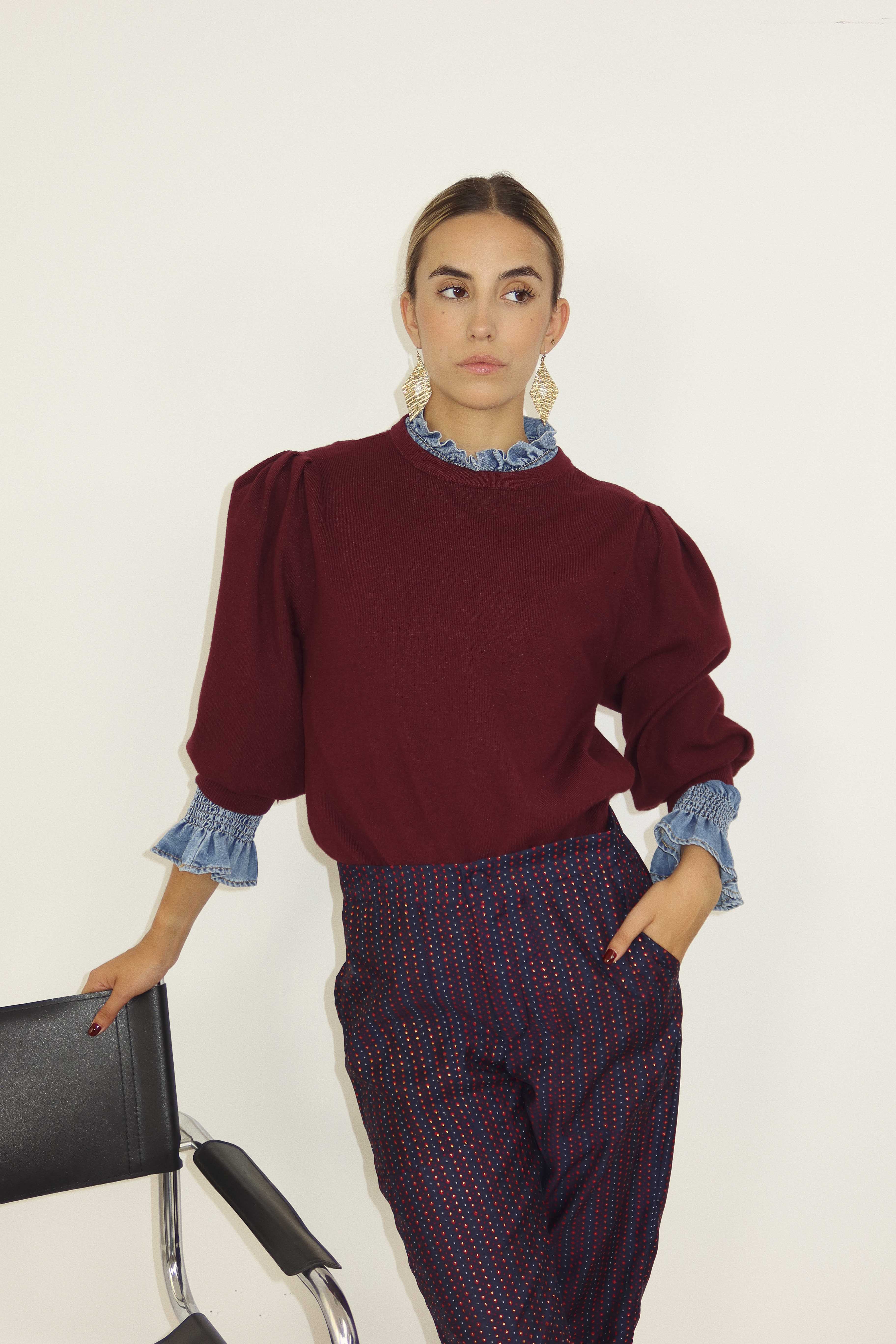La talla única de este jersey mide: 36 cm ancho de hombros, 48 cm ancho de pecho, 50 cm de largo y 46 cm largo de manga.