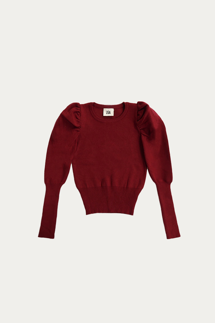 Jersey de punto con cuello redondo, manga larga ajustada y en la cintura.