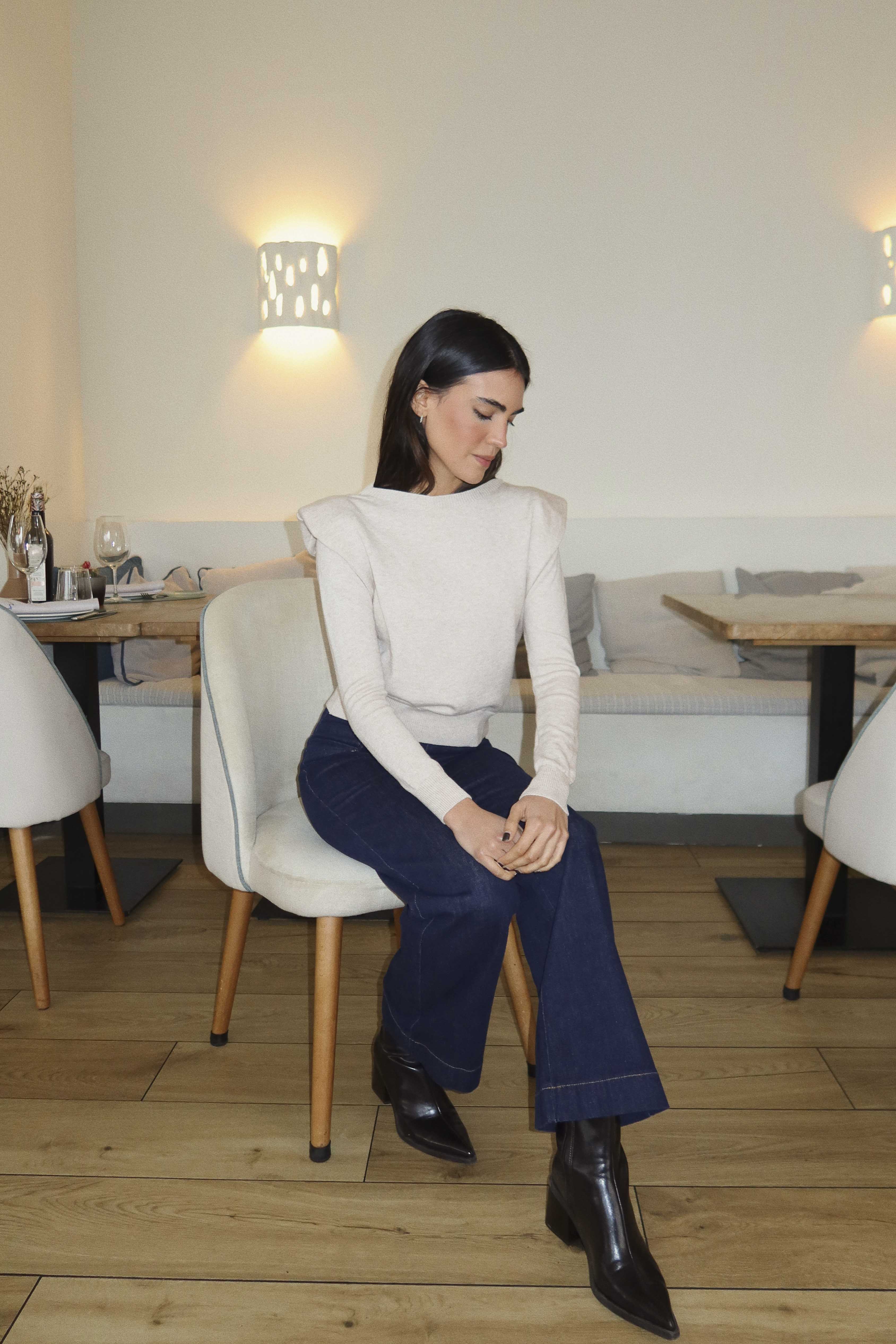 Jersey de punto, manga larga y hombreras.