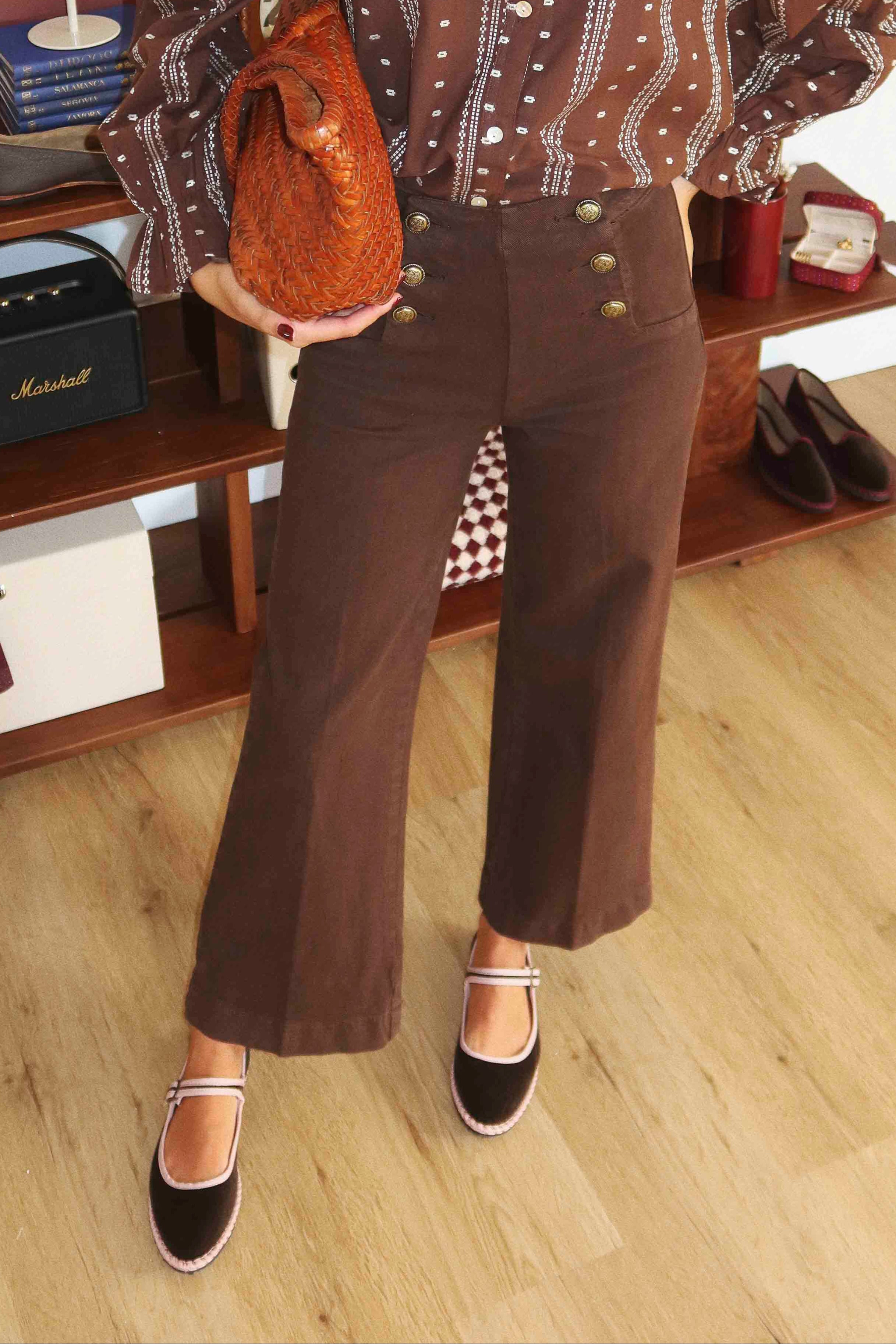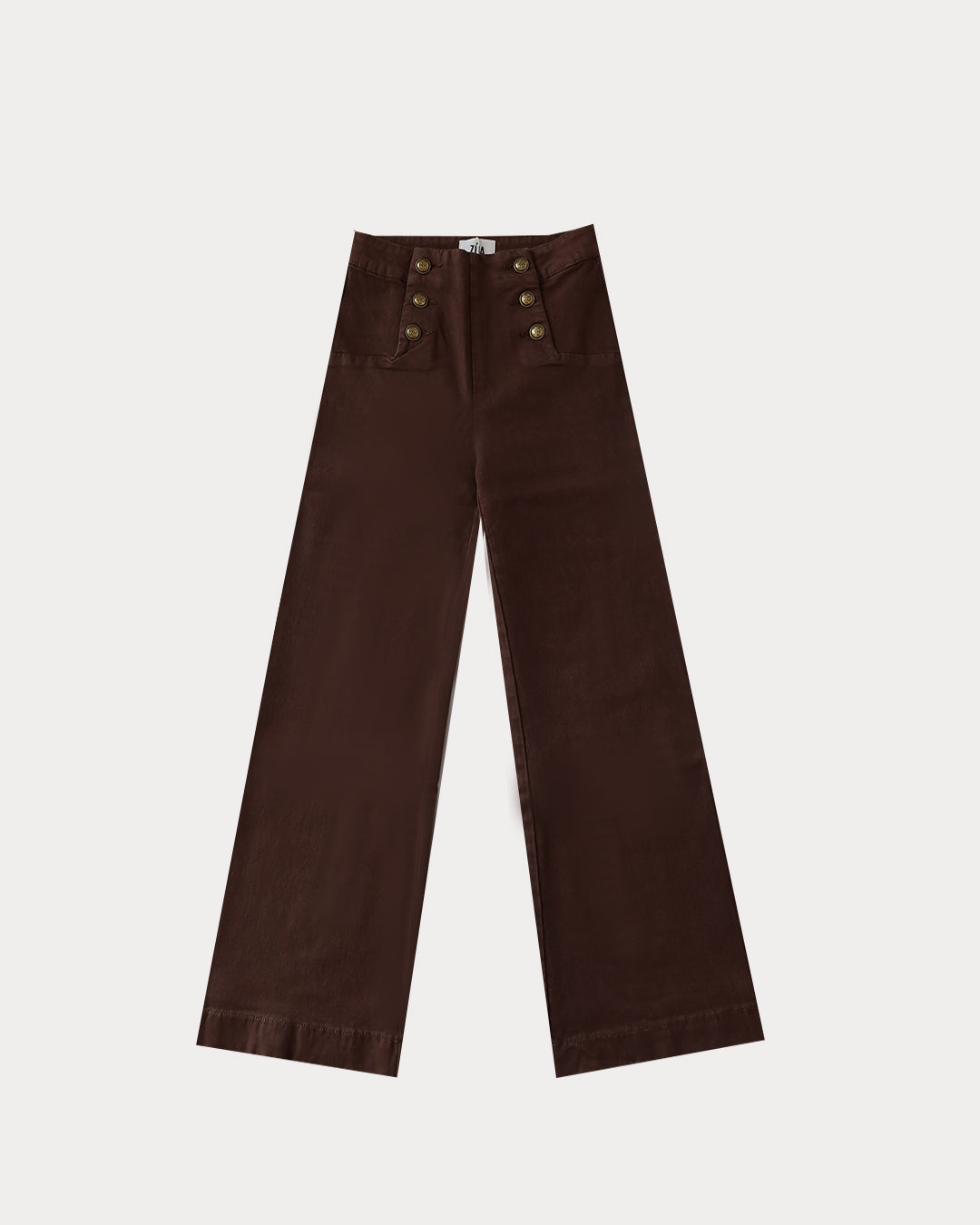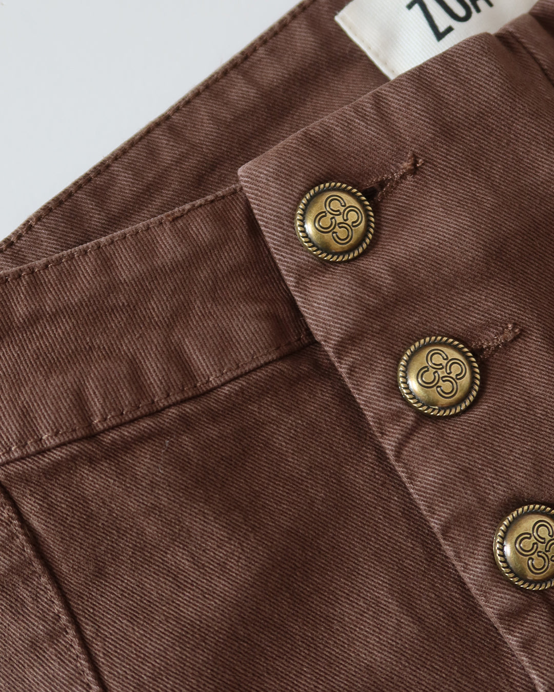 Nuestro pantalón Bass caraterístico por sus 6 botones y sus bolsillos de parche traseros. Tiro medio 33 cm.