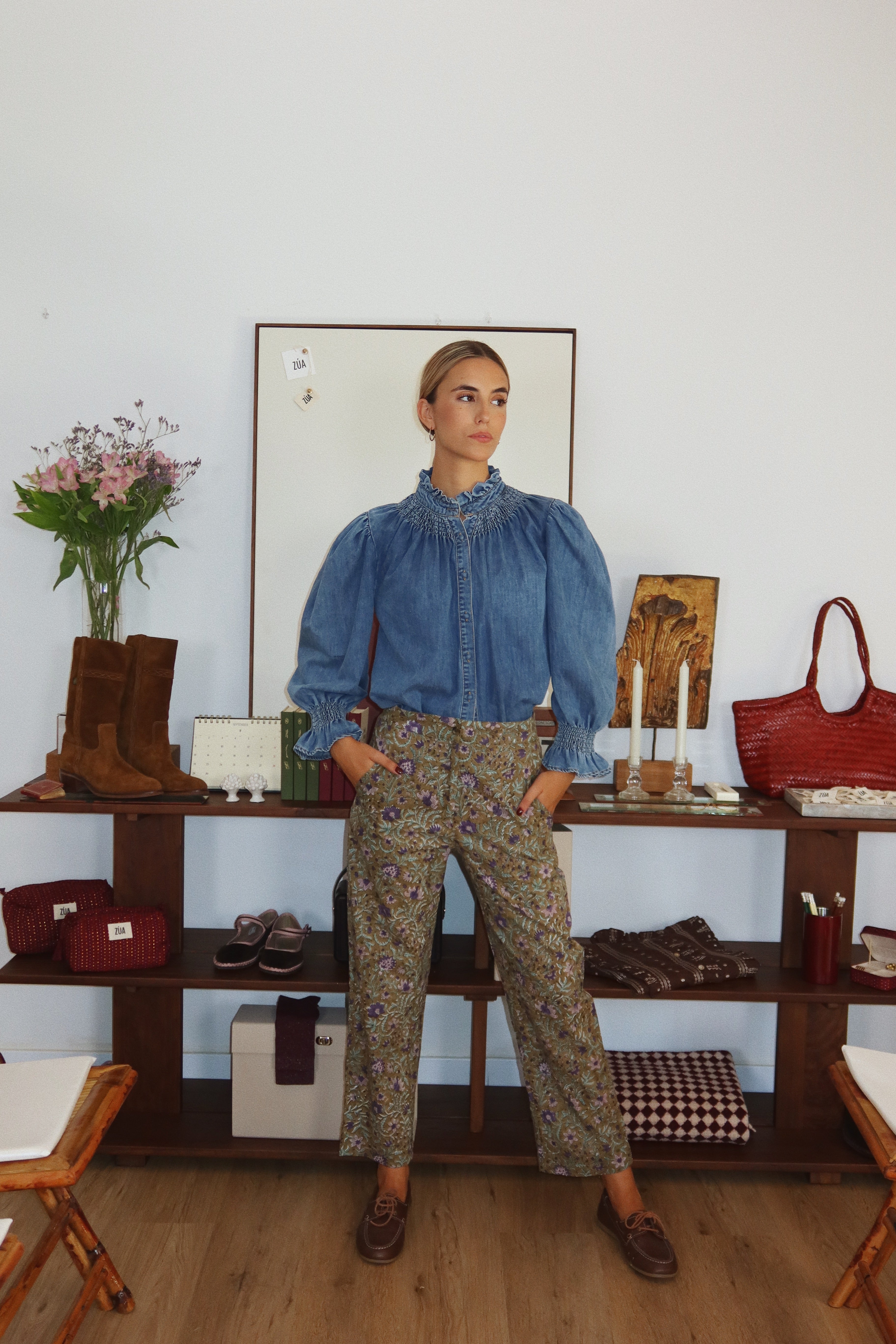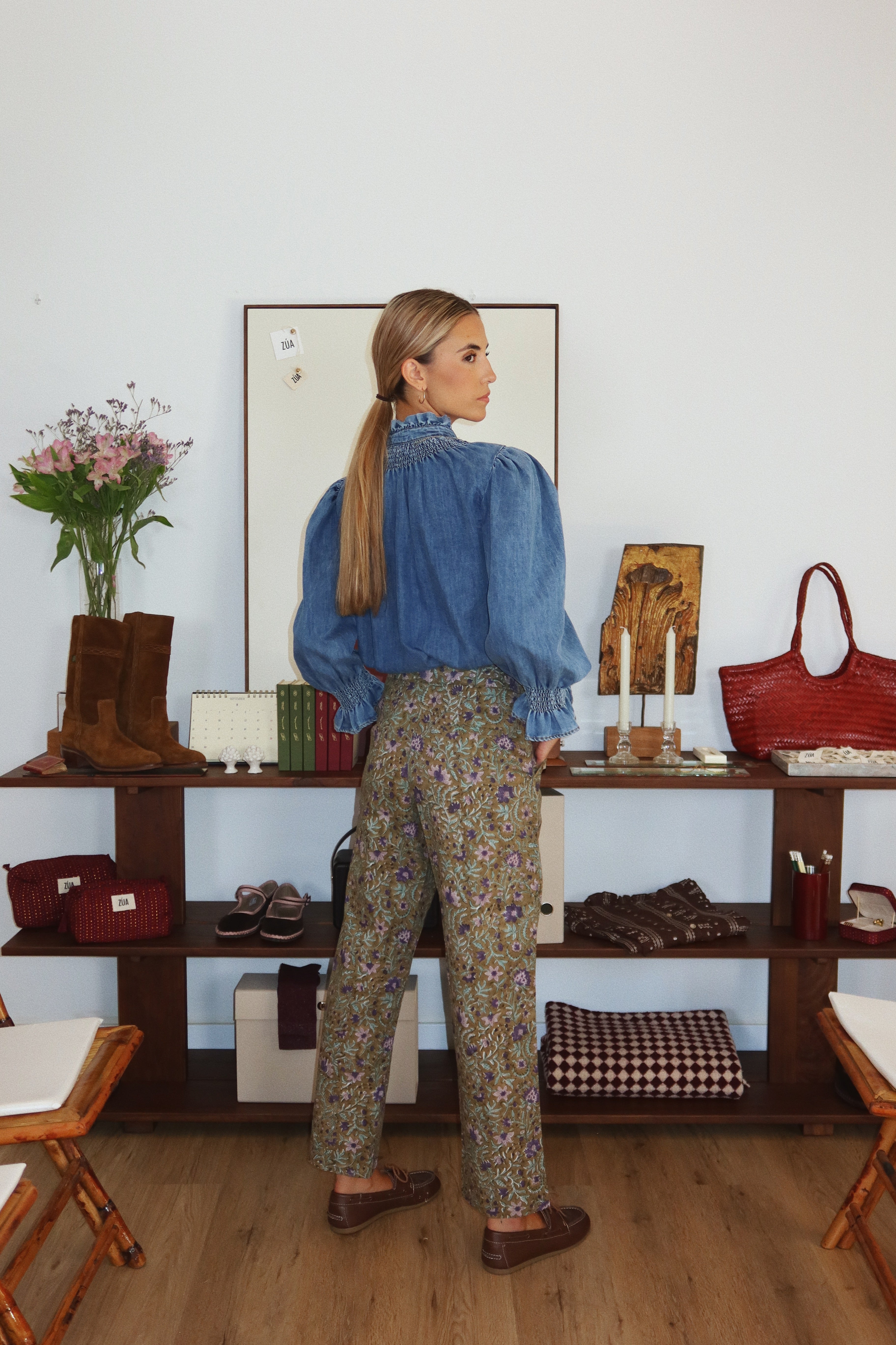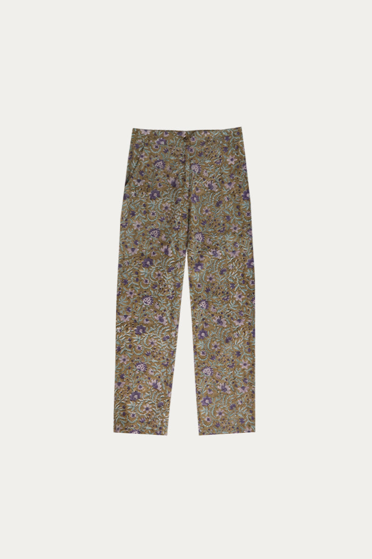 Pantalón blockprint. Tiro medio. Cierre frontal con cremallera y botón.
