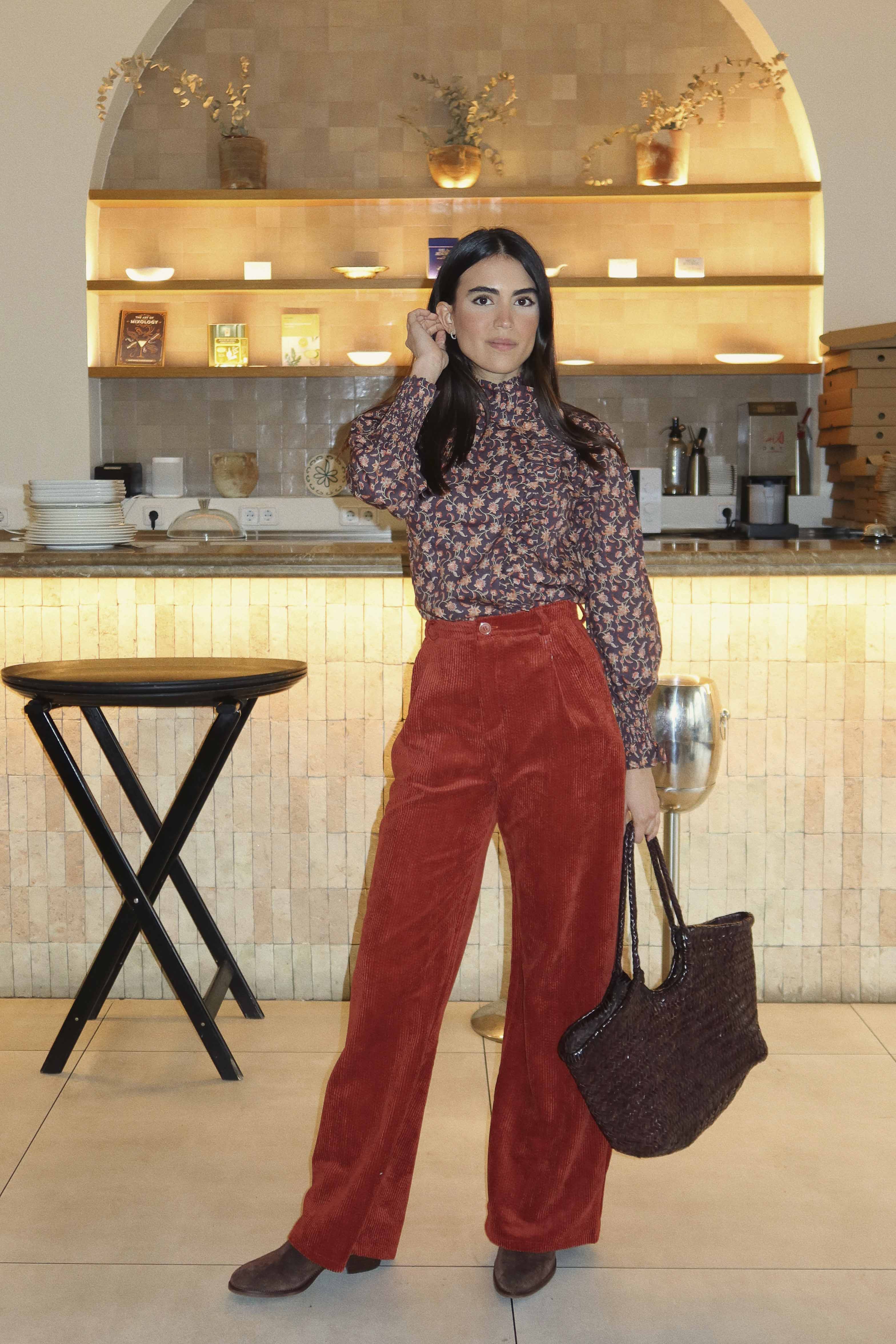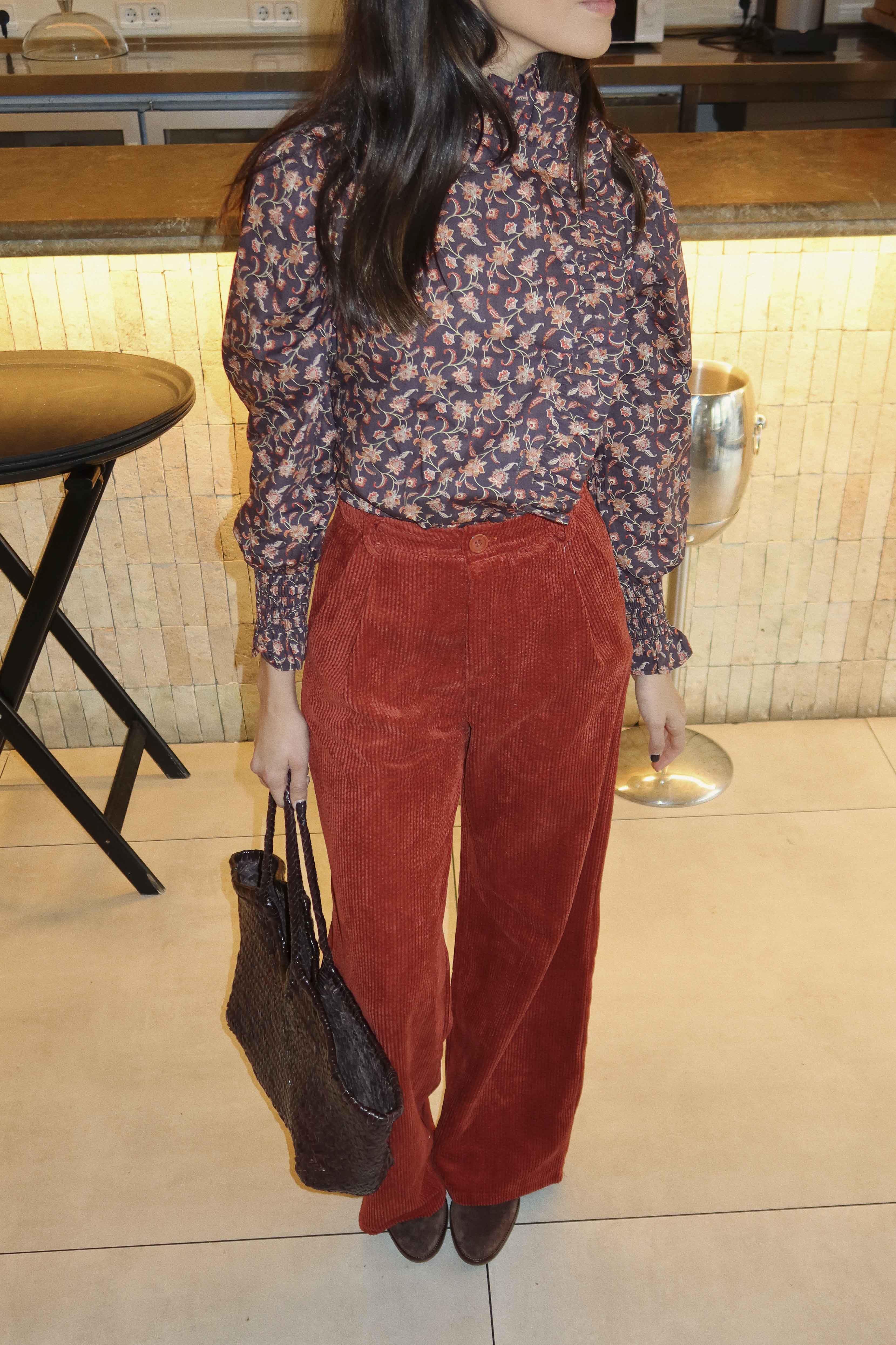 Pantalón recto de pana, cierre delantero con cremallera oculta y botón. Bolsillos en laterales. Con trabillas. Tiro alto 32 cm