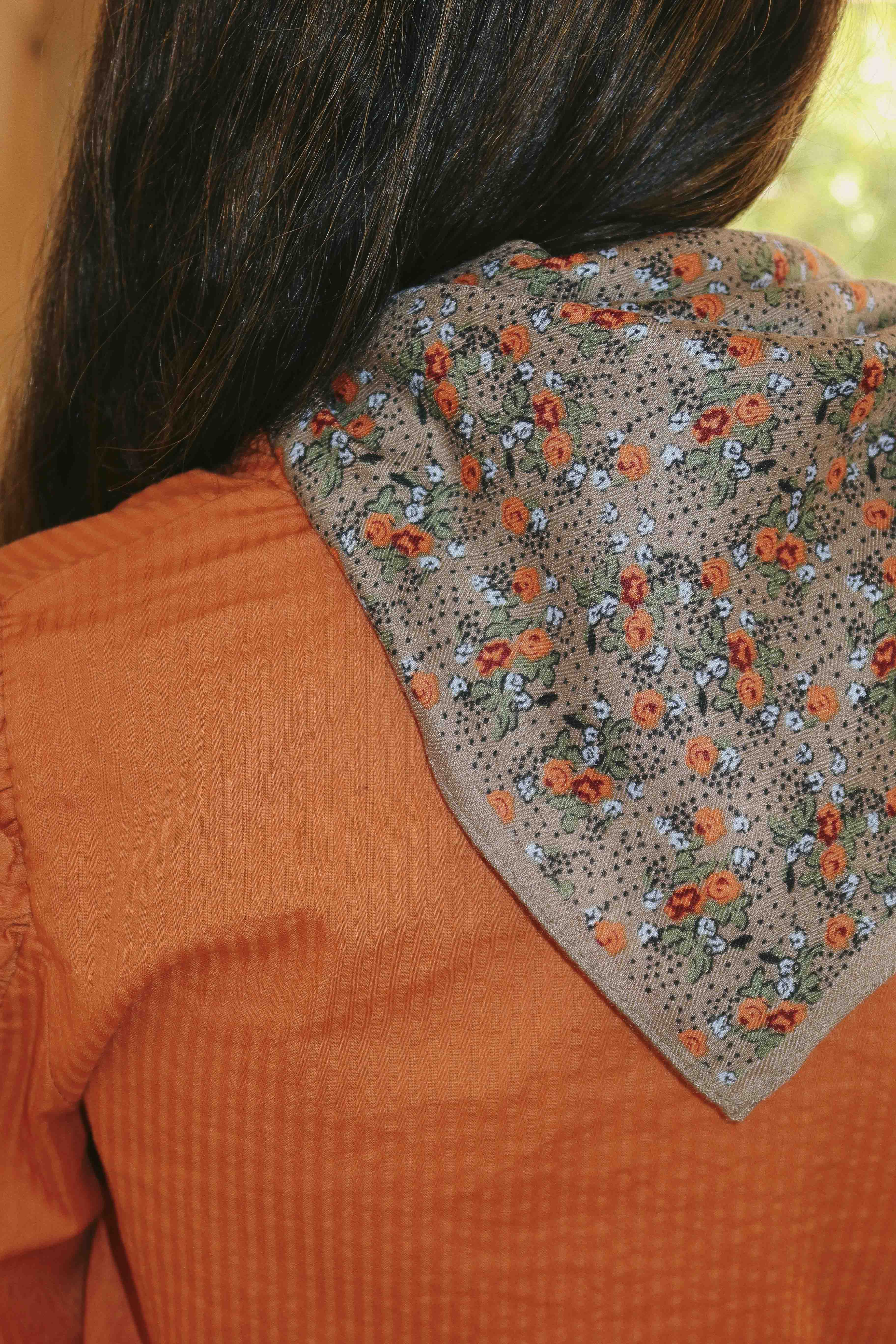 Pañuelo estampado. Medidas: 68 x 68 cm.