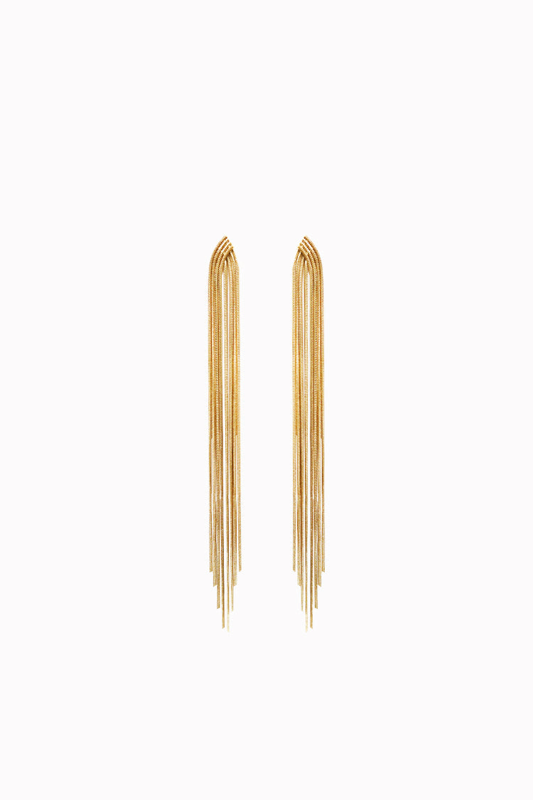 Pendientes de acero dorados largos cascada. Cierre con tuerca.