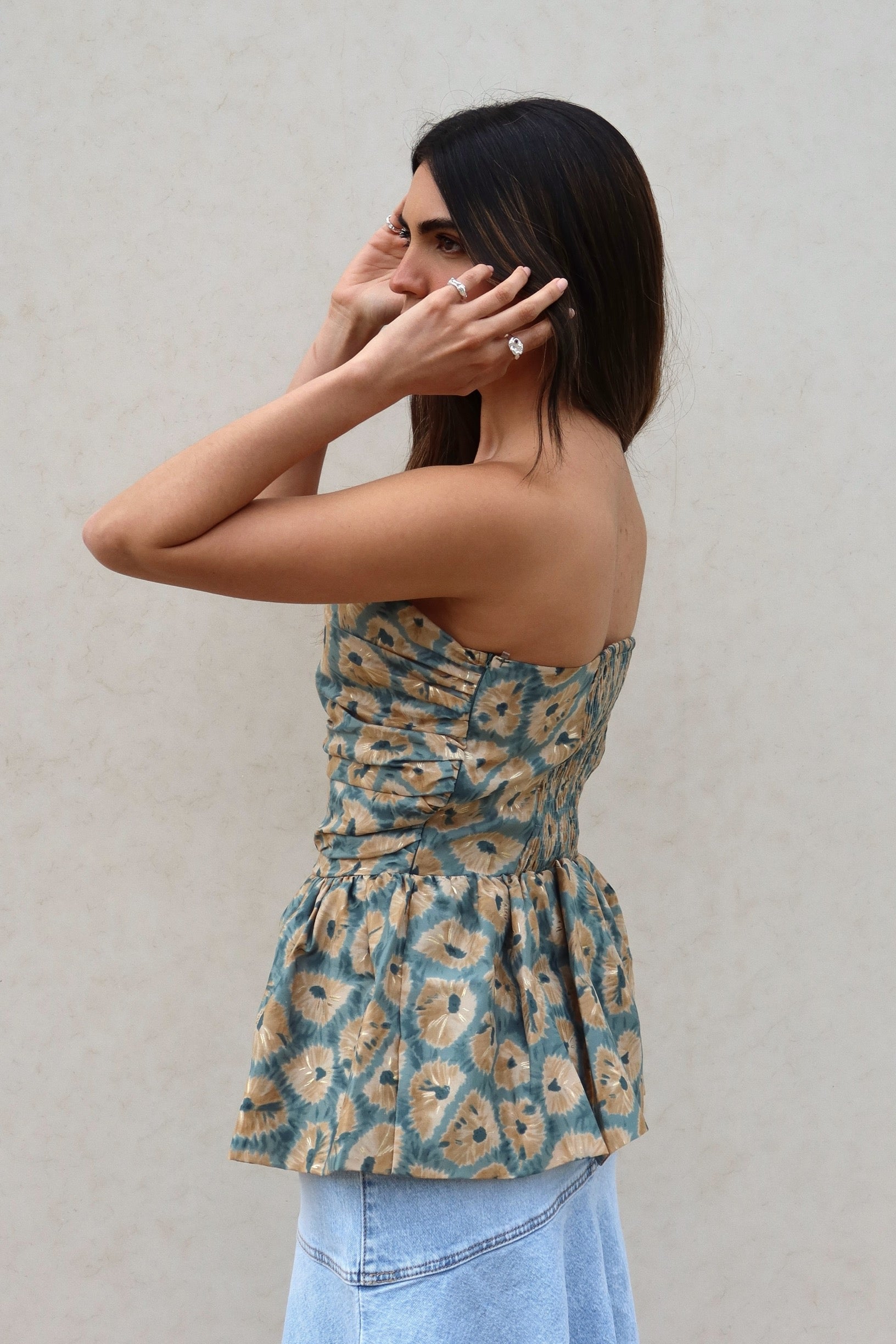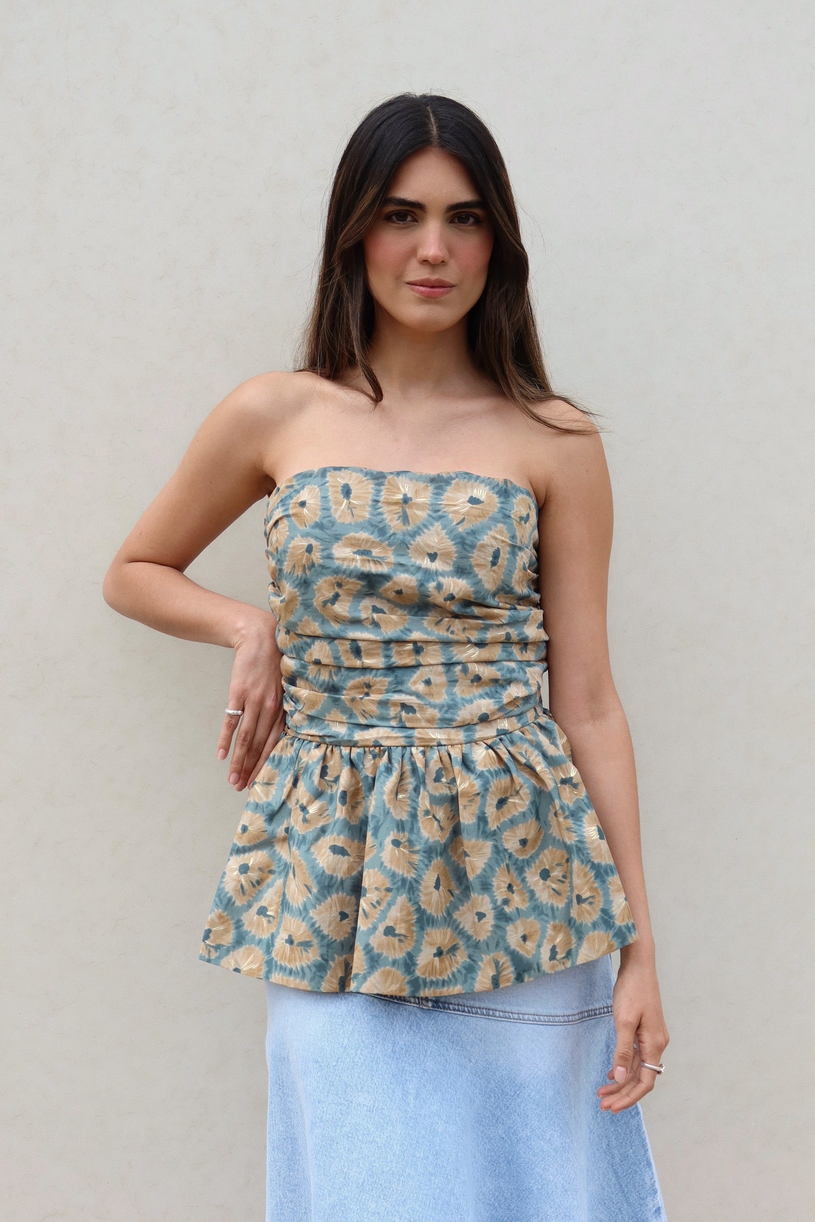 Top con escote recto y hombros descubiertos. Bajo acabado peplum.
